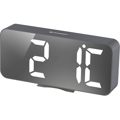 Despertador con un atractivo aspecto de espejo con indicador de hora y temperatura.
