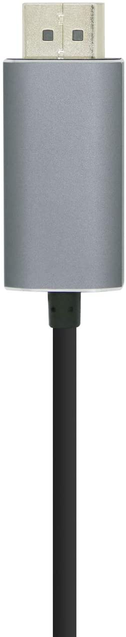 - Conversor USB-C a DISPLAYPORT, con conector USB-C macho en un extremo y DISPLAYPORT 4K@60Hz macho en el otro