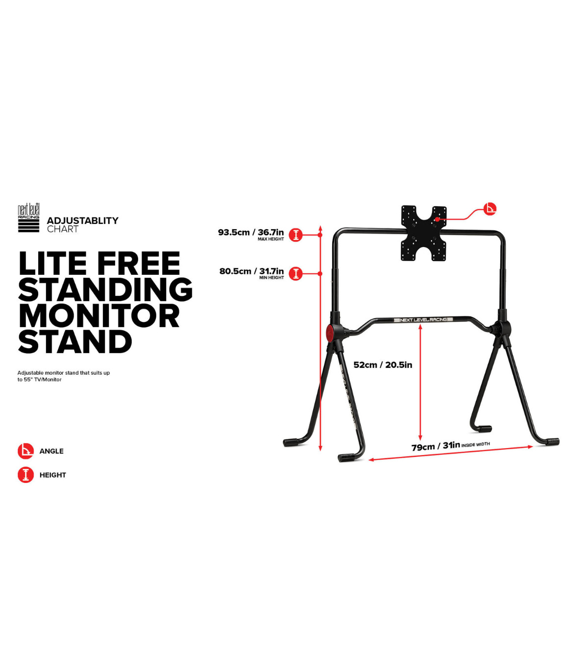 El soporte de monitor independiente Lite de Next Level Racing® es versátil y compacto para usuarios con espacio limitado. Con un diseño ligero, el Lite Free Standing Monitor Stand puede ser transportado de una habitación a otra, ya sea para tu experiencia de simulación o para el uso diario con facilidad.